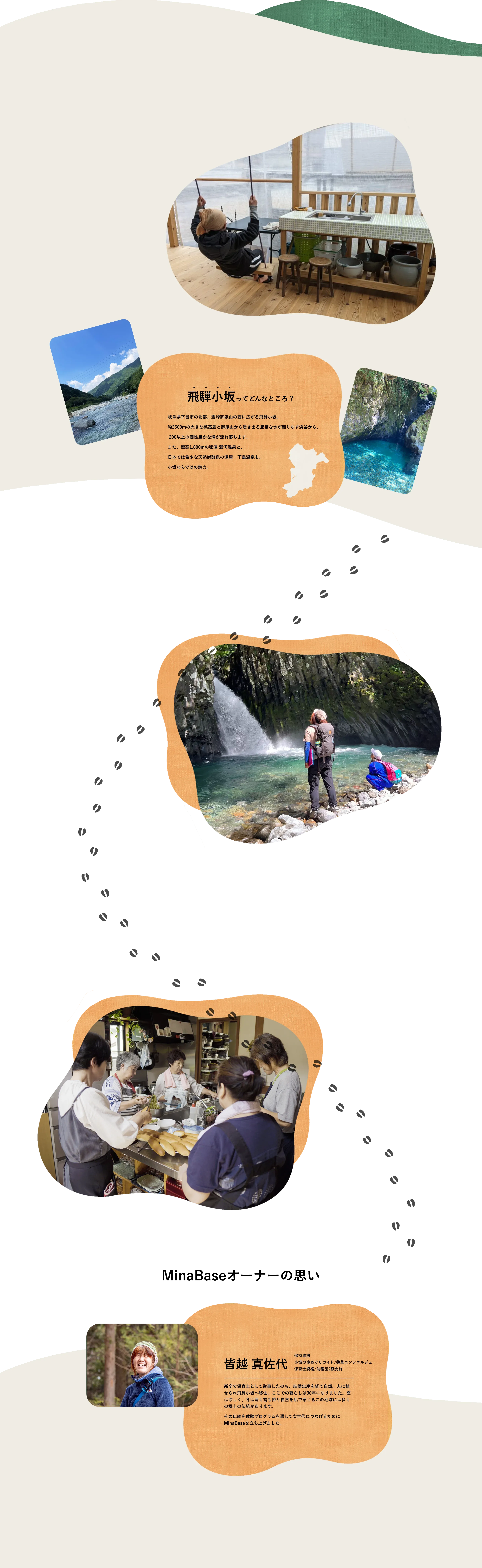 「MinaBase」では、飛騨小坂の豊かな自然と共に過ごす特別な体験を提供します。 自然の中でのアクティビティや地元の素材を使ったクラフトワークショップを通じて、 地域の魅力を深く感じ取り、自然とのつながりを再発見することができます。 都会の喧騒から離れ、心身ともにリフレッシュするこのプログラムで、 自然とのつながりを再発見してみませんか?